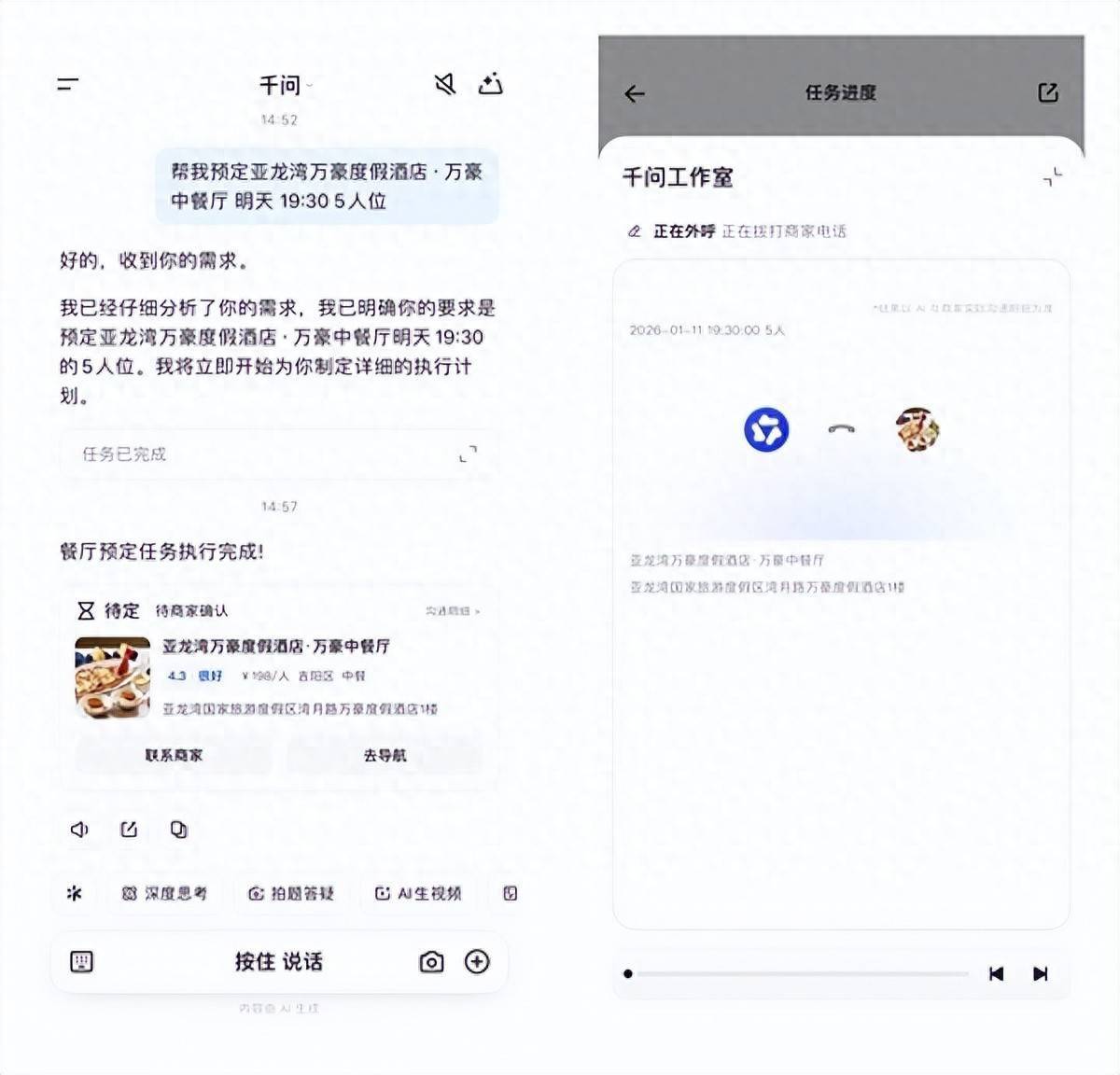 快科技1月26日音尘,日前,千问App全面接入高德扫街榜,并推出AI打电话订餐厅的功能。