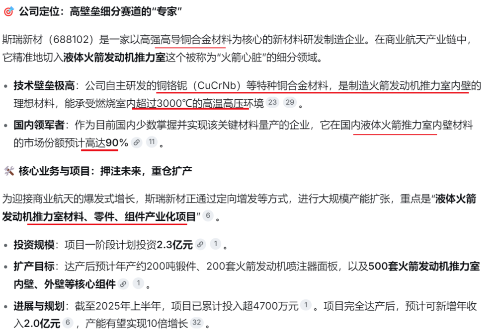 斯瑞新材的扮装更像是专注于攻克“火箭腹黑”关键材料困难的“人人”。它的价值在于紧紧卡住了火箭发动机推力室内壁这一高壁垒圭表,是国内少有的集本领、产能与头部客户深度绑定于落寞的中枢供应商。