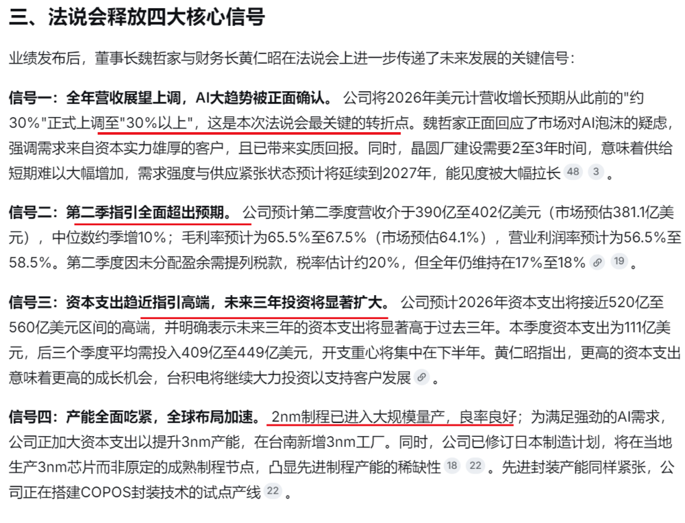 3、台积电Q1功绩超出预期