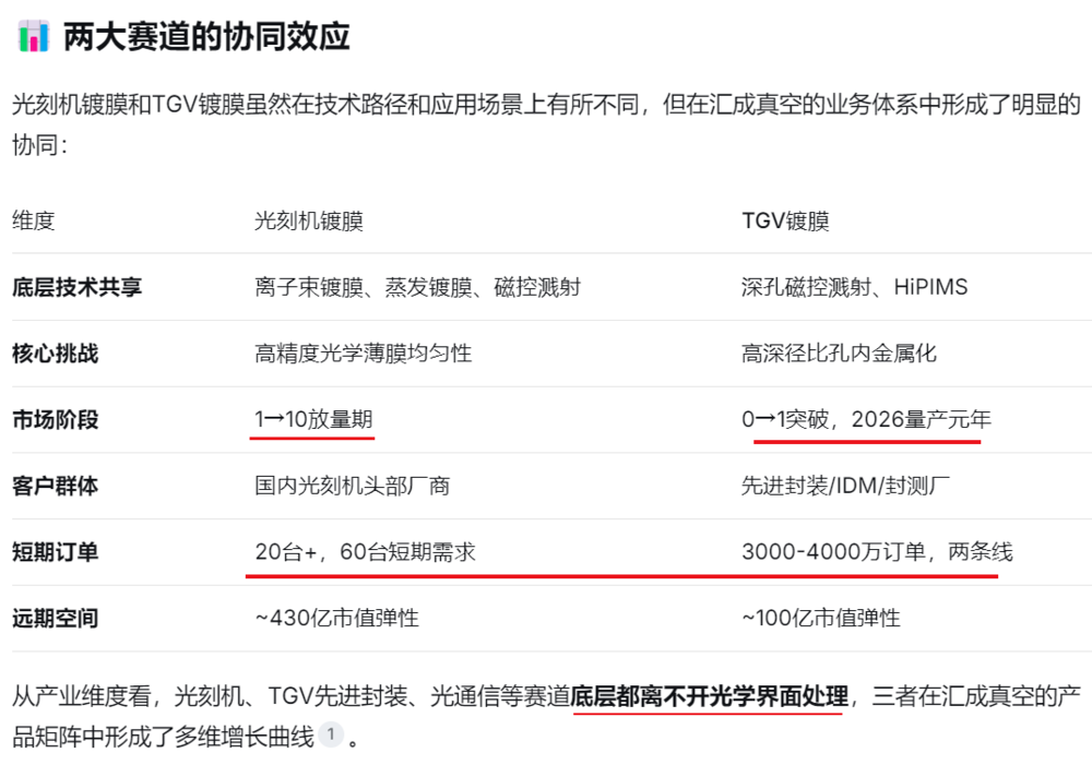 三、汇成真空——光刻机业务从1-10+TGV镀膜从0-1