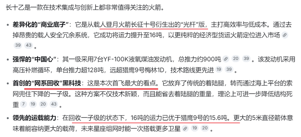 我国长征十号乙火箭行将进行的海上网系回收,推行上亦然属于垂直起降回收本领的一种,海上网系回收本领的旨趣其实就访佛于舰载机借助扼制索系统在航母降落。火箭网系回收海上平台上有“井”字型绳子,而火箭上有4个挂钩,当火箭复返历程中着落到一定的高度时,火箭上的这些挂钩就会挂在火箭网系回收海上平台上的4根“井”字型绳子上,完成拿获回收。