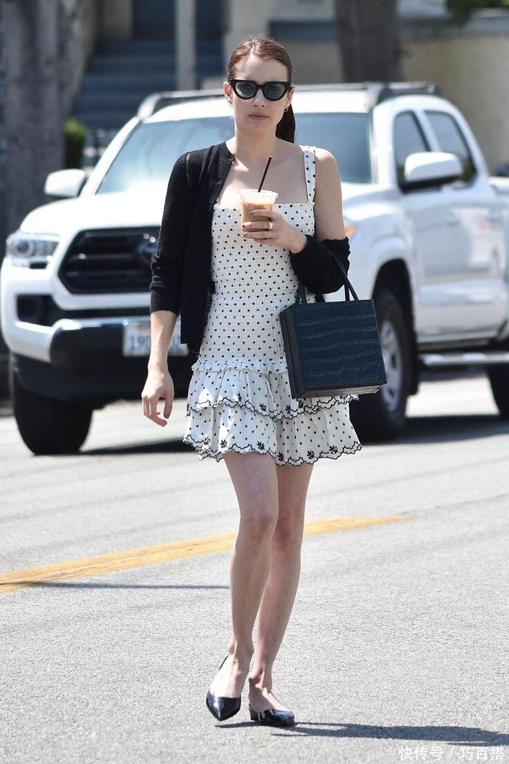 波点元素的连衣裙上身成果也不赖,吊带直角衣领的筹办,芳华活力,白底玄色波点印花作念点缀,既不繁琐又不轻挑,端淑、实用又耐看,贼有辨识度和性价比。