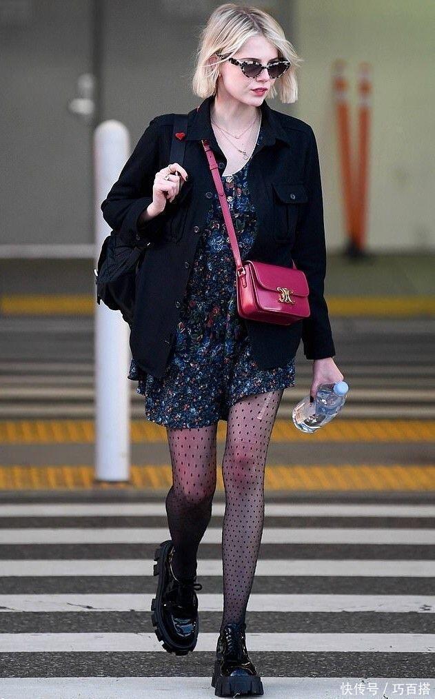 淡色系碎花裙和缓如水,但要是整套造型都以淡色系为主会缺少牵记点,这种情况下,大家选拔高跟及踝靴与之搭配成果最好,紧口筹办简单利落,纯黑配色基础负责,与淡色碎花搭配息争同一,上浅下深的成果有用幸免了为德不终,不雅感一绝。